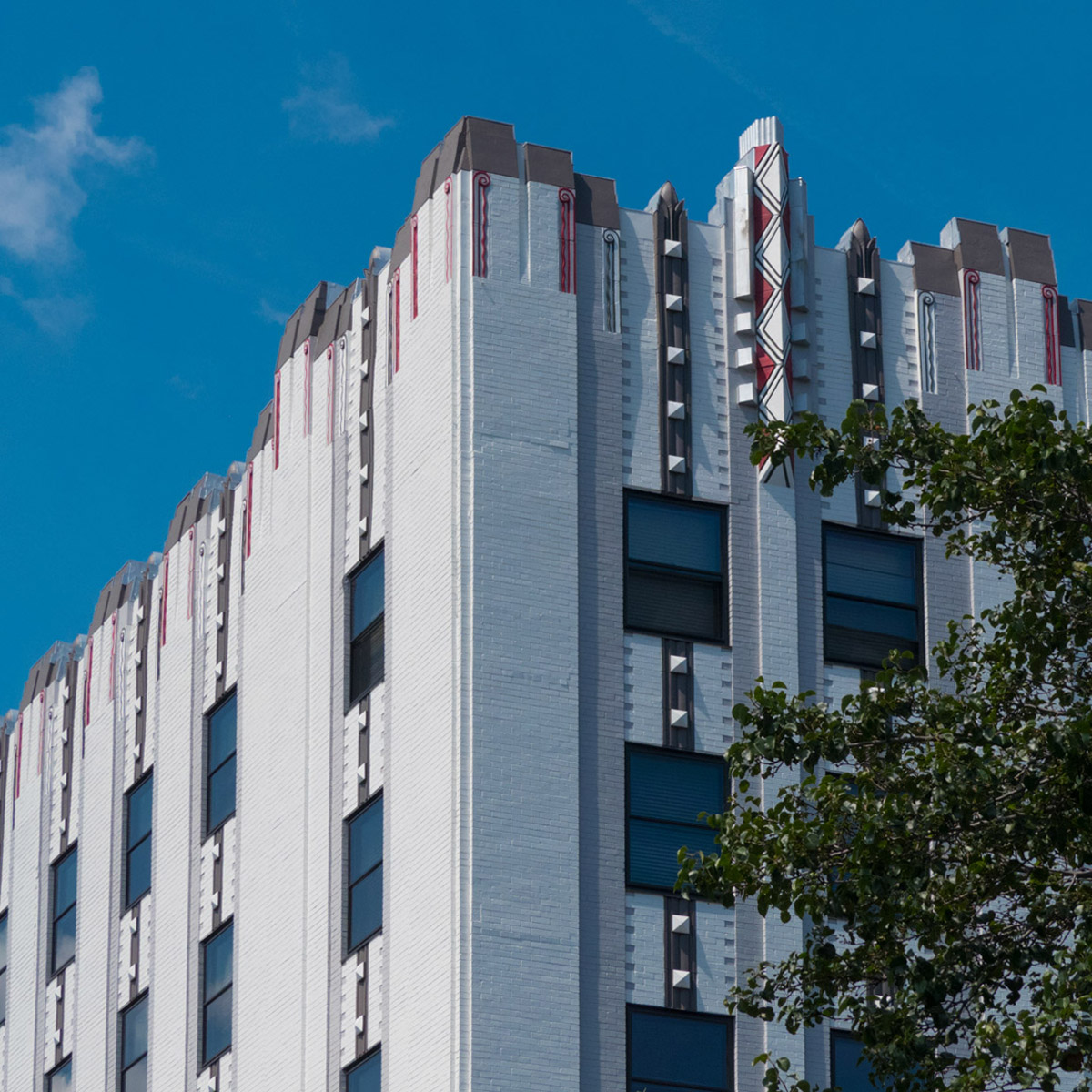 An 8-story tower was constructed, adjoining the 6-story section that withstood the fire, and and the new hotel was named the Ponce de Leon. Designed with lavish interior and geometric architecture patterns, this structure exemplified art deco motifs that were popular in America at the time.