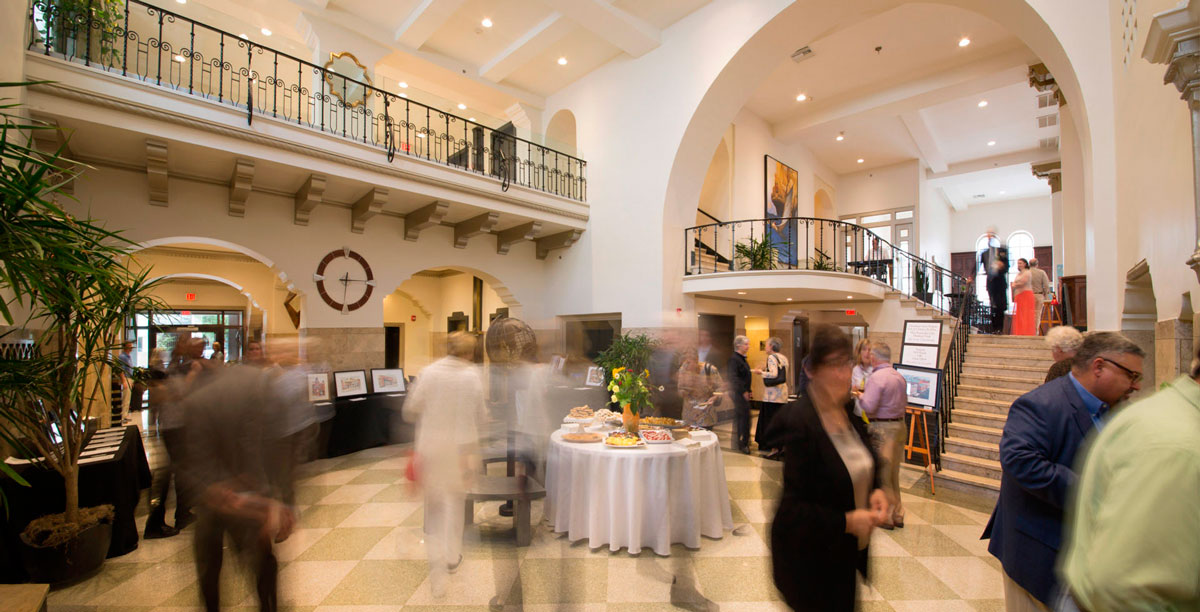 The Ponce de Leon offers grand interior space for special events, such as weddings, cocktail functions, and charity events.  The expansive lobby is a multi-level space with soaring ceilings, fountains, and gorgeous art deco elements.  It’s the perfect place for a party!